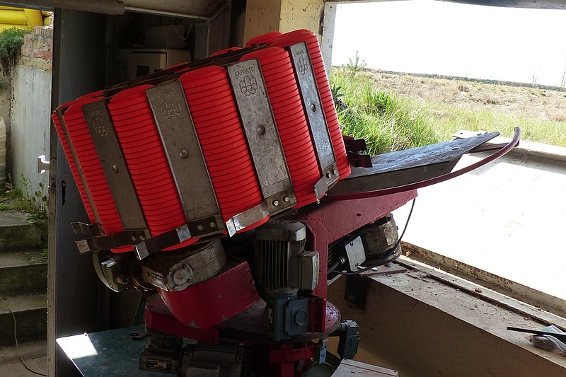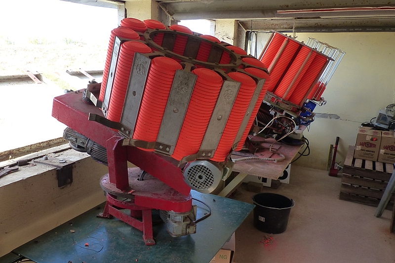 Vergessen soll in diesem Zusammenhang auch nicht Frank Leopold werden, der den Unterbau hergestellt hat. Die Wurfmaschine bringt schließlich so einige Kilo auf die Waage bzw. auf das Untergestell an der Bunkerwand.