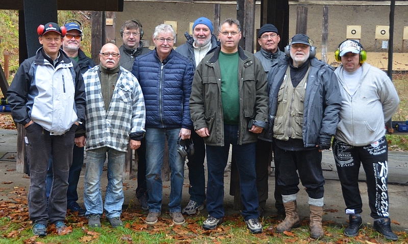 Am 16.11.2019 trafen sich Groß- und Kleinkaliberschützen des Vereins auf der Anlage der SG Fläming in Altes Lager. Es wurden pro Wettbewerbsserie 13 Schuss abgegeben, von denen die besten 10 in die Wertung kamen. Die erzielten Ergebnisse können sich ebenfalls sehen lassen. Zeitweise waren alle Stände belegt. Niemand brauchte also eine Zwangspause einlegen. Und für denjenigen, den die Witterung ein Frösteln in die Glieder trieb, hatte unser Schießleiter Thomas ein kleines Feuerchen angemacht. Zwischen den Serien war also immer wieder eine kurze Aufwärmung möglich. Nachdem wir das nebenstehenden Gruppenfoto gemacht hatten, trafen übrigens noch 2 weitere Schützen ein. Somit war das Teilnehmerfeld mit 14 Sportschützen das stärkste in den letzten Jahren. Es war ein guter Wettbewerb für unsere Groß- und Kleinkaliberschützen. Wir bedanken uns bei der SG Fläming und natürlich bei Thomas Hinze für die Standnutzung und seine umsichtige Schießleitertätigkeit. Bis zum nächsten Jahr.