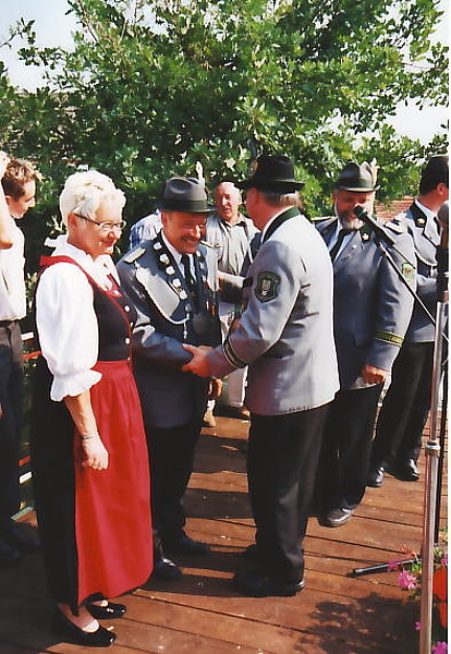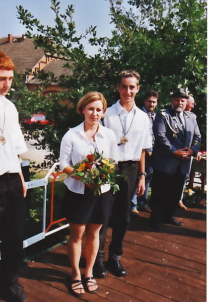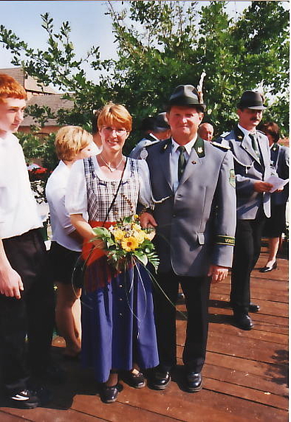 Bevor die neue Schützenkönig zu seinem Recht kommen sollte, wurden zunächst noch seine Ritter vorgestellt, die ihn bis zum Schützenfest 2003 im Falle seiner Abwesenheit zu festlichen Anlässen vertreten sollen. Diese Titel konnten in diesem Jahr Frank Pölemann, der von seiner Gattin Ingrid begleitet wurde, Karl-Heinz Pfeifer mit Manuela Mattner sowie Georg Schmidt mit Ines Hasse an ihren Seiten, erringen.
