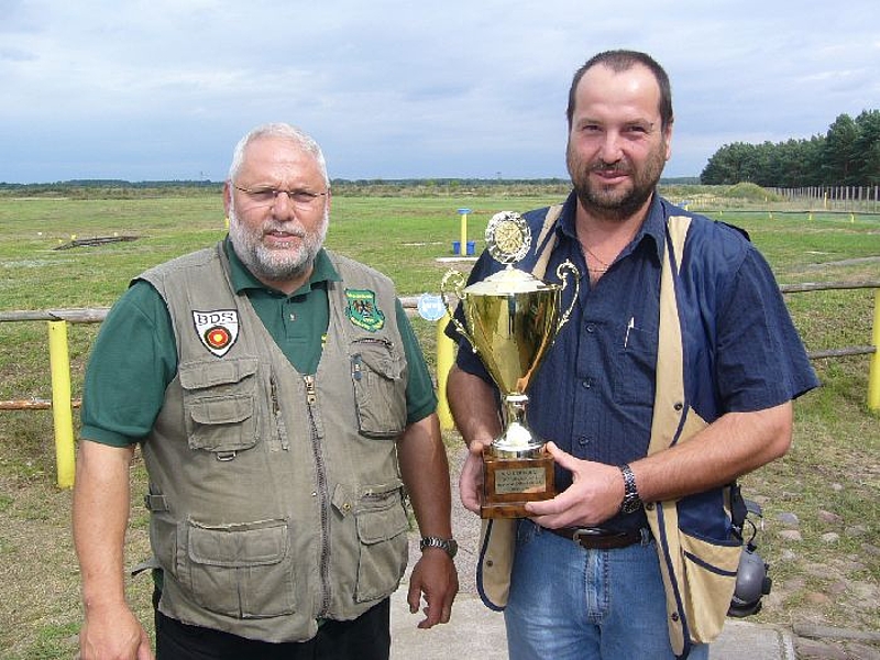 Auf dem Trapstand ging es nach wieder einmal äußerst spannenden Verlauf erst nach einem Stechen zur Preisverteilung. Das Stechen und damit den 2. Platz konnte Werner Hirsch aus Pechüle gewinnen. Beim Gleichstand von 7 Treffern verwies er im Stechen mit 4 von 5 möglichen Treffern seine Konkurrenten Wolfgang Haase und Thomas Hinze aus Lüdendorf auf die Plätze. Den Sieg jedoch errang Hans Spieß mit ausgezeichneten 8 Treffern und durfte dafür einen digitalen Sat-Receiver als Preis mit nach Michendorf nehmen. Das Ergebnis ist umso höher zu bewerten, weil es unter den schwierigen Bedingungen eines starken und böigen Windes erzielt wurde.