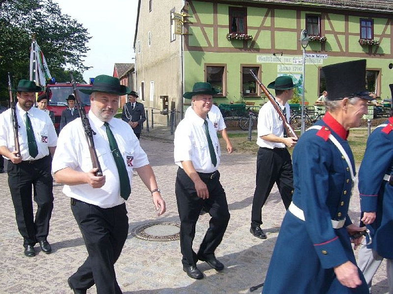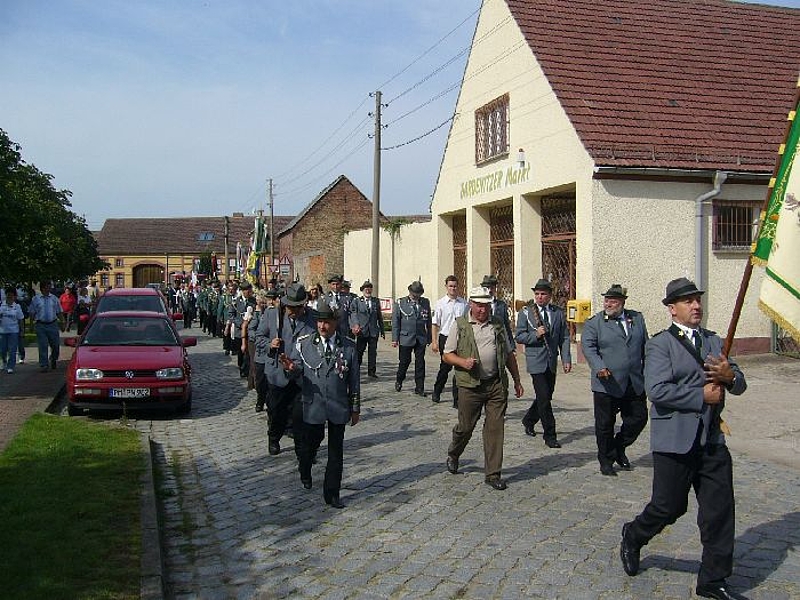 Nach dem stimmungsvollen Empfang beim Schützenkönig, für den sich der Verein hier nochmals herzlich bedanken möchte, setzten sich die Mitglieder des Vereins mit dem Spielmannszug an der Spitze in Richtung Dorfgemeinschaftshaus Bardenitz in Bewegung. Hier warteten bereits die angereisten Schützen der befreundeten Gastvereine.