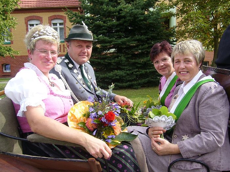 Danach wurde der neue Schützenkönig, Norbert Höhne mit seiner Gattin Adelheit aufgerufen. In einer Kutsche fuhren beide bis an die Bühne. Nach der Begrüßung wurde die Königskette übergeben. Beide nahmen anschließend die Glückwünsche des Vereinsvorsitzenden und der Ehrengäste entgegen. Das Königspaar wurde von den Ehrendamen Karin Franzke und Marlies Schwaldt begleitet.