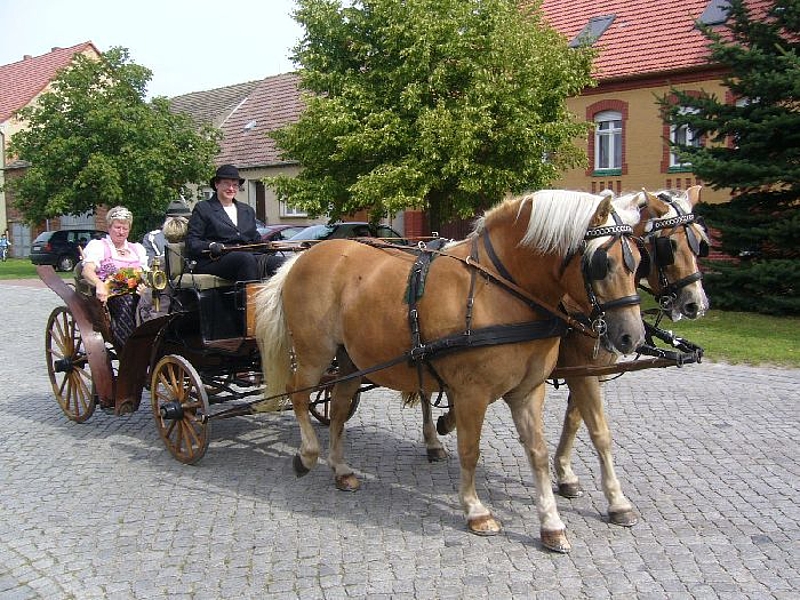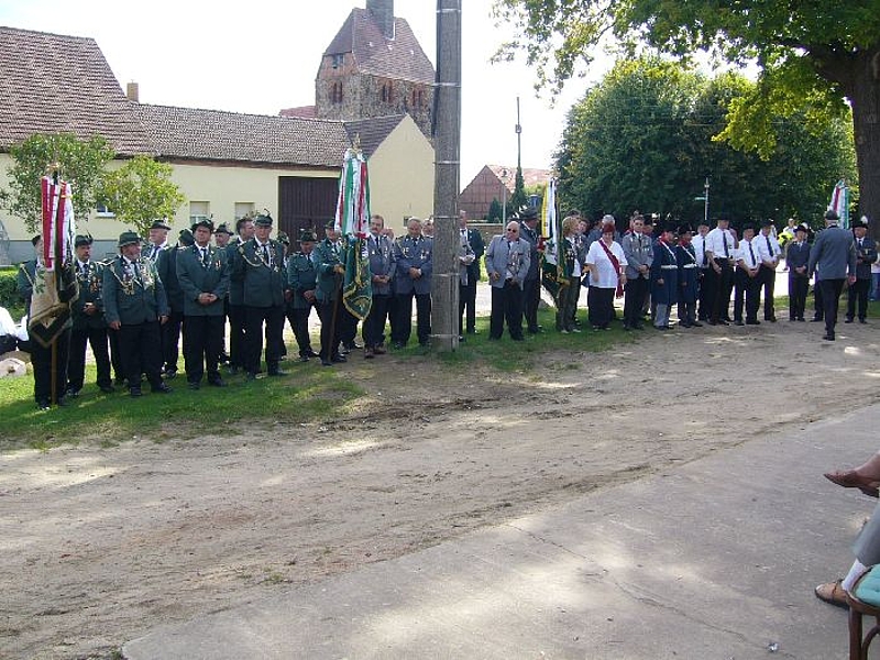 Nach der Übergabe der Erinnerungsschleifen an die anwesenden Gastvereine nahmen die Schützen hinter der Königskutsche und dem Fanfarenzug Neuseddin ihre Plätze für den Festumzug durch die Gemeinden Bardenitz und Pechüle ein.