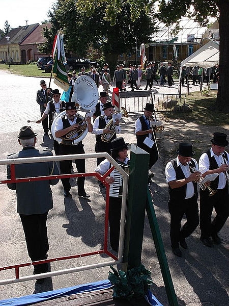 Gegen 10.30 Uhr machten wir uns nach einem Abschiedssalut auf den Weg zurück nach Bardenitz. Hier wurden vor dem Dorfgemeinschaftshaus die angereisten Schützen aus befreundeten Vereinen begrüßt. In diesem Jahr waren folgende Vereine vertreten: